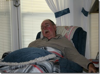 After the day was finally done I went over to Frank's house because I had heard he had returned from the hospital. He looked much, much better than he did this morning. Much, much better than he does in this picture. He was really putting it on for me with this pose. He's got some issues to deal with but I think he's going to be fine. We're all rooting for you Frank!