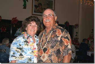 Soon it was 4:30, time for the Luau to start. Jim and Sharon Danielson, winter residents, volunteered to be greeters for us.