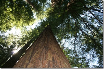 As we walked along the path amongst the trees I couldn't help but be mindful of the fact that the serene, majestic beauty of this grove is a living reminder of the magnificent redwood forest that covered much of this area before logging operations began many years ago. Did they know what they were doing? Were they aware that they were cutting down these beauties and that it would take years, no, tens of years to replenish the land with these giants? That unlike a run of the mill pine tree that would be full grown in 25 - 30 years that it would take a hundred or more for these redwoods to reach full height?