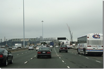 Here we are in four lanes of traffic going over the Bay Bridge.