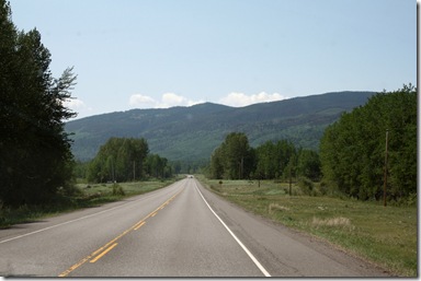 A going down the road picture. Take note of the brown trees in the center of the picture. They are pine trees that have been killed by the Pine Beetle. This little devil has killed tens of thousands of trees here in Canada. Everywhere you look there are dead pine trees. What a shame!