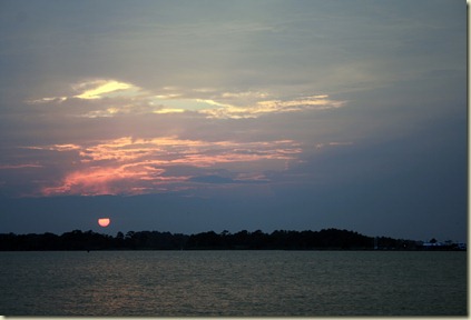 So dinner is ready and I’m just finishing up the main portion of dinner and ready to start on the corn on the cob, yes, we eat our corn on the cob last, don’t ask me why we just do. And then it started. Our 5th wheel rocked! We looked at each other and said simultaneously, “What the hell was that?” We looked outside and the storm was HERE…..NOW! It came in much, much faster than we thought it would. Things were blowing everywhere, people all over the park were scrambling to secure lawn chairs and towels that were hanging out to dry and beach toys were flying down the street. A lot of us were caught off guard and had to fight to get our awnings up. Some lost that battle, us included. The wind was blowing at 60 miles an hour and awnings were just ripping to shreds right before our eyes. Don’t forget, we’re at the beach so when the wind blows at 60 mph SAND is blowing everywhere which means that you have to do everything with your eyes shut or at least nearly shut. And the rain came down. Torrential downpour! Within mere seconds we were soaked to the skin. I don’t think I’ve ever seen a storm come on so fast and so strong.